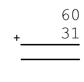 Q1) 60+31 = [ 91]