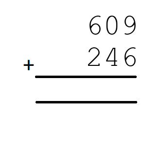 Q8) 609+246 = [ 855]