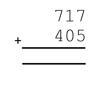 Q7) 717+405 = [ 1122]