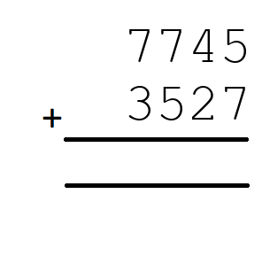 Q1) 7745+3527 = [ 11272]