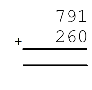 Q3) 791+260 = [ 1051]