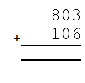 Q1) 803+106 = [ 909]
