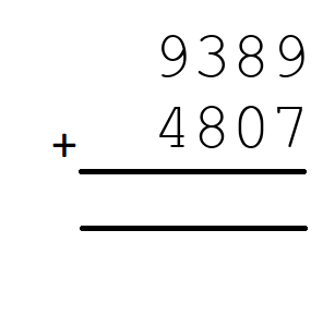 Q2) 9389+4807 = [ 14196]