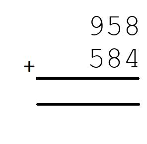 Q9) 958+584 = [ 1542]