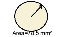 Q1) Find the area of the circle to 3sf. [ 78.5 \(mm^2\)]