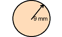 Q3) Find the area of the circle to 3sf. [ 254 \(mm^2\)]