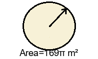 Q3) Find the exact area of the circle in terms of \(\pi\) . [ 841\(\pi\) \(m^2\)]