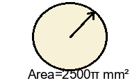 Q2) Find the exact area of the circle in terms of \(\pi\) . [ 1190.25\(\pi\) \(mm^2\)]