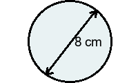Q5) Find the exact area of the circle in terms of \(\pi\). [ \( 16\)\(\pi\)\(cm^2\) ]