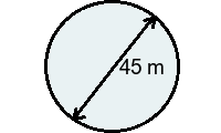 Q2) Find the circumference of the circle to 3sf. [ 141 m]
