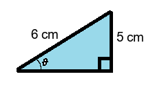 Q5) Find the value of the missing angle \( \theta \) to 1-dp. [ 5.7 °]
