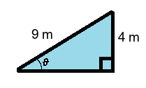 Q2) Find the value of the missing angle \( \theta \) to 1-dp. [ 23.6 °]