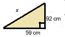 Q2) Find the missing length x to 3sf. [ 92.8 cm]
