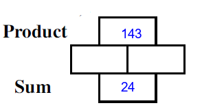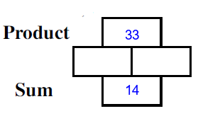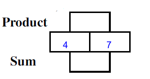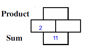 Q7) Complete the missing rectangles [ sum= 11, product=28]