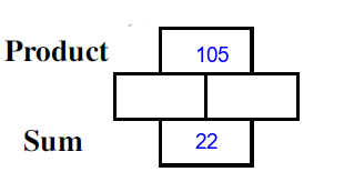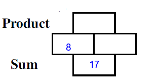 Q8) Complete the missing rectangles [ sum= 10, product=21]