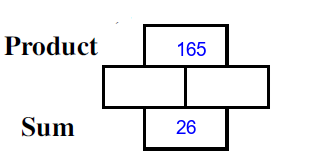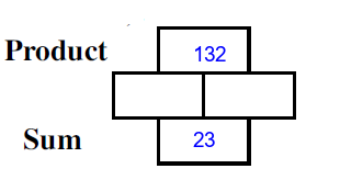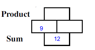 Q1) Complete the missing rectangles [ sum= 12, product=36]