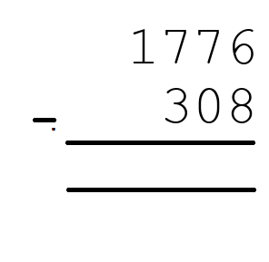 Q3) 1776 - 308 = [ 1468]