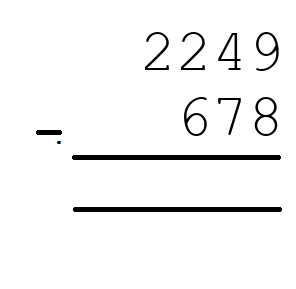 Q6) 2249 - 678 = [ 1571]