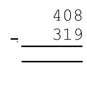 Q9) 408 - 319 = [ 89]