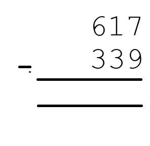 Q3) 617 - 339 = [ 278]