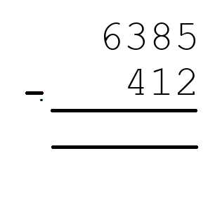Q5) 6385 - 412 = [ 5973]