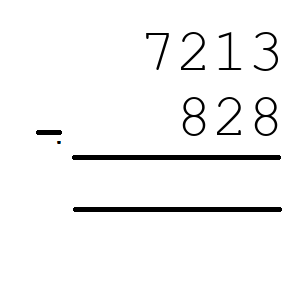 Q1) 7213 - 828 = [ 6385]