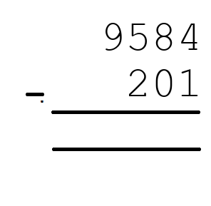 Q10) 9584 - 201 = [ 9383]
