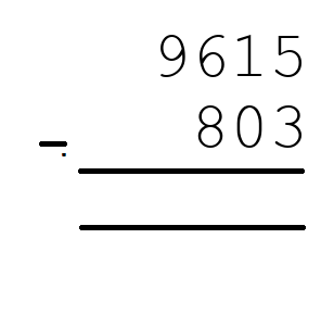 Q7) 9615 - 803 = [ 8812]