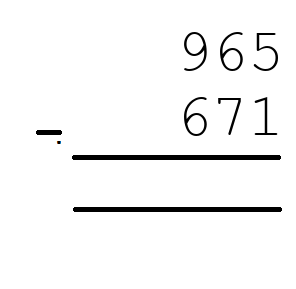 Q1) 965 - 671 = [ 294]