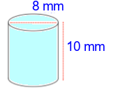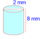 Q2) Calculate the surface area of the cylinder to 3sf. [ 33.0 \(mm^{2}\)]