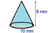 Q4) Calculate the radius of the cone to 3sf. [ 8 \(mm\)]