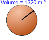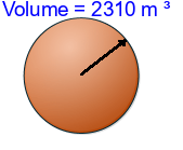 Q1) Calculate the radius of the sphere to 3sf. [ 6.8 \(m\)]