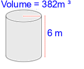 Q2) Calculate the radius of the cylinder to 3sf. [ 5.5 \(m\)]