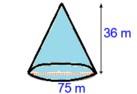 Q1) Calculate the radius of the cone to 3sf. [ 38 \(m\)]