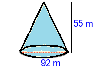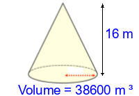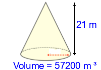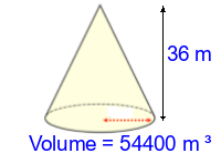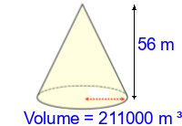 Q2) Calculate the volume of the cone to 3sf. [ 53000 \(m^{3}\)]
