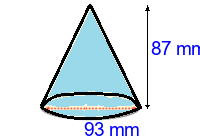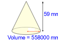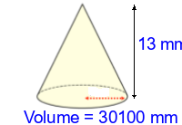 Q1) Calculate the volume of the cone to 3sf. [ 197000 \(mm^{3}\)]