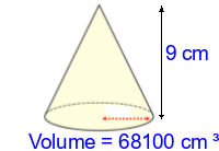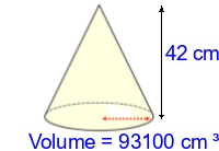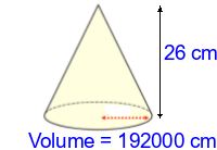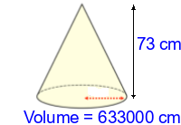 Q3) Calculate the volume of the cone to 3sf. [ 59000 \(cm^{3}\)]