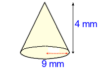 Q4) Calculate the volume of the cone to 3sf. [ 151 \(mm^{3}\)]