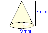 Q2) Calculate the volume of the cone to 3sf. [ 594 \(mm^{3}\)]