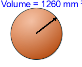 Q5) Calculate the volume of the sphere to 3sf. [ 4190 \(mm^{3}\)]