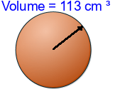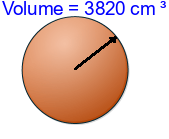 Q3) Calculate the volume of the sphere to 3sf. [ 4190 \(cm^{3}\)]